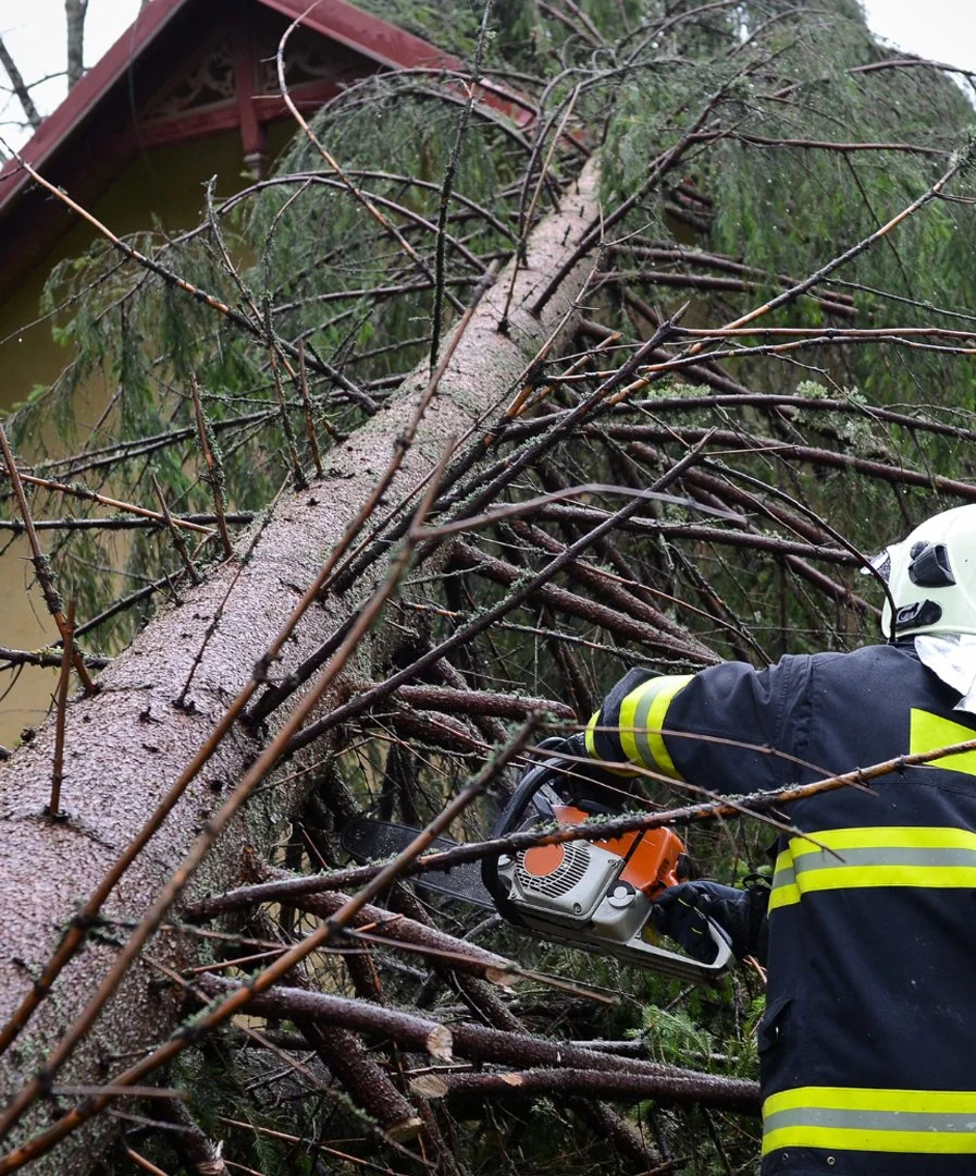 What should I do if I have experienced a storm and there are fallen trees?